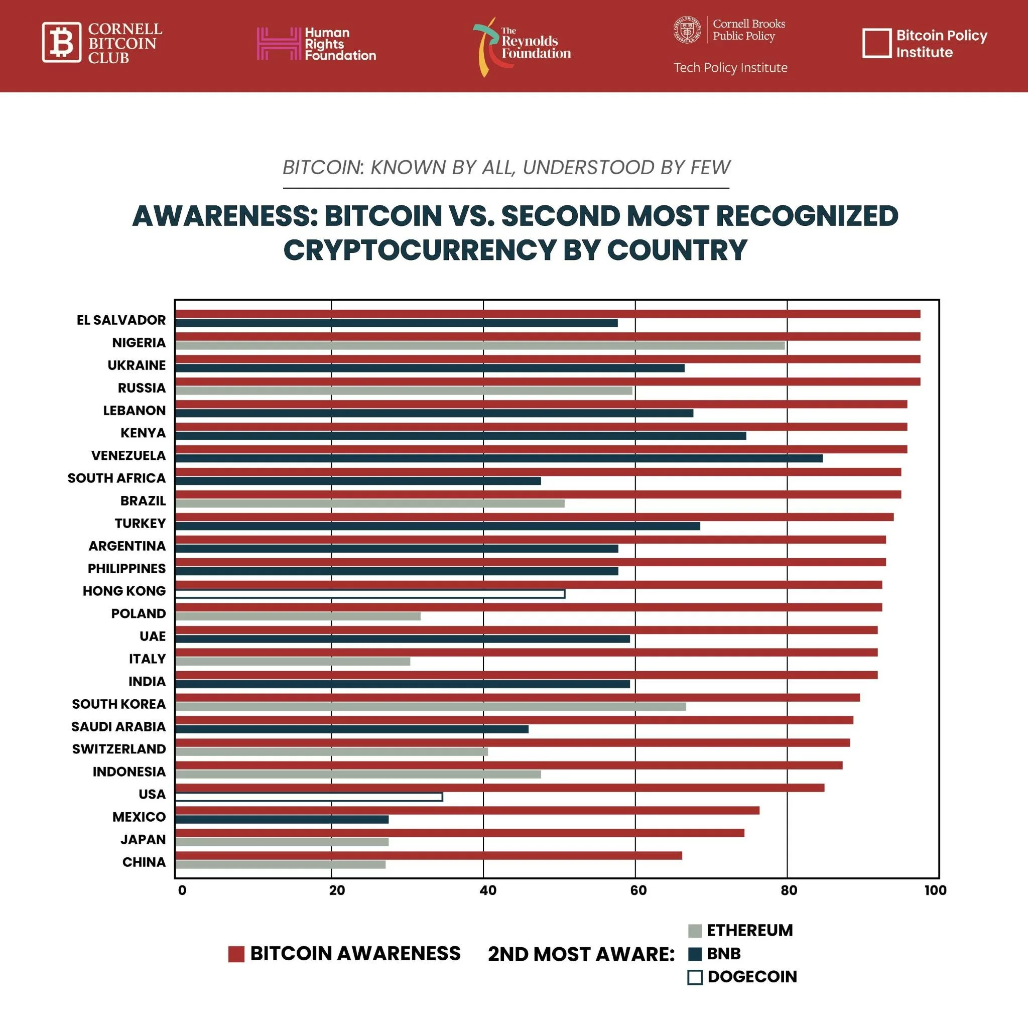 Bitcoin is one of the most widely recognized words on the planet. Across nearly every country in our 25-country study, over 85% of people report having heard of it.
