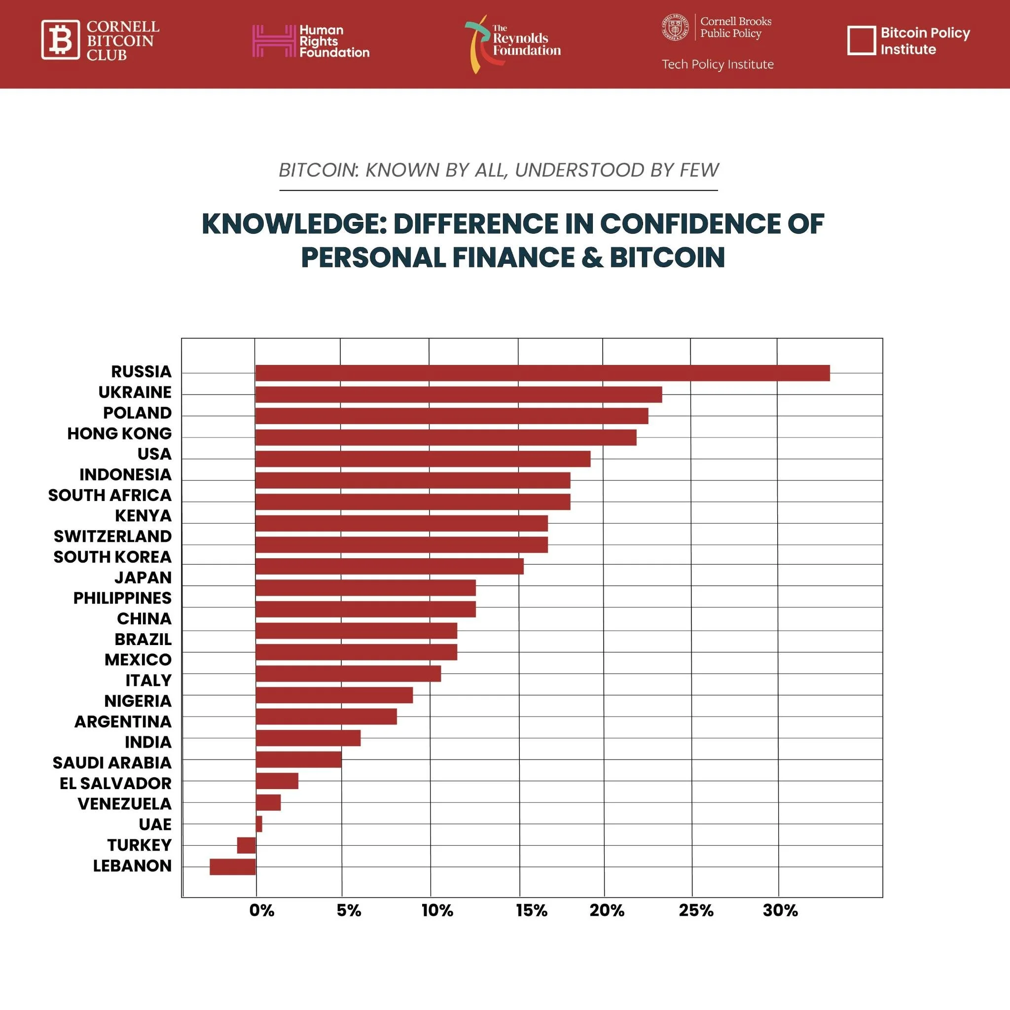 In 23 out of 25 countries, people say they feel more confident in their understanding of personal finance than they do of bitcoin.