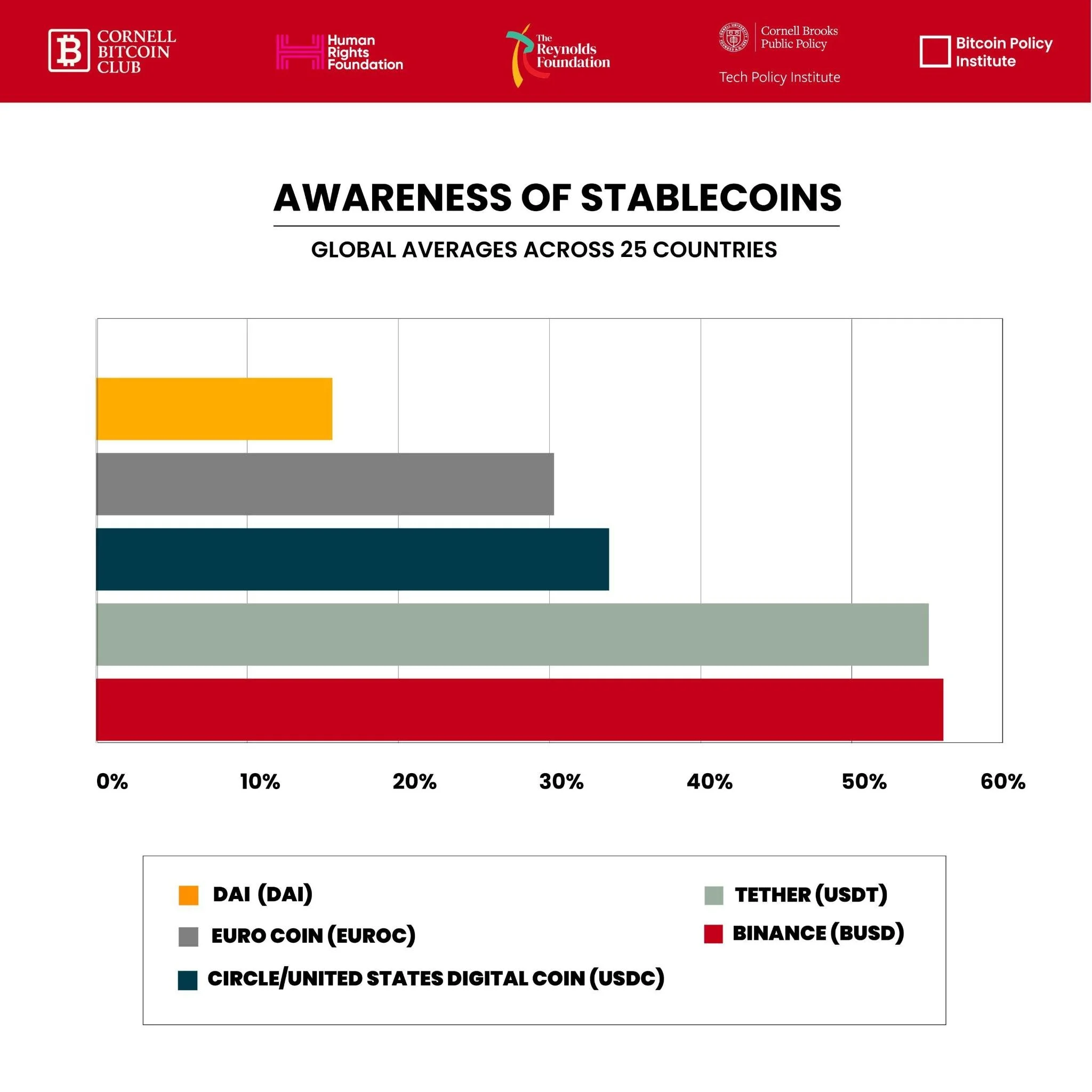 In our study, recognition of stablecoin brands clustered around a few leaders: