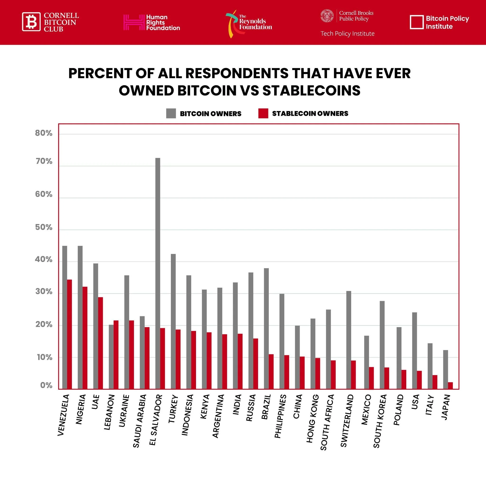 Venezuela and Nigeria: High ownership reflects domestic economic instability, inflation, and the search for dollar access.