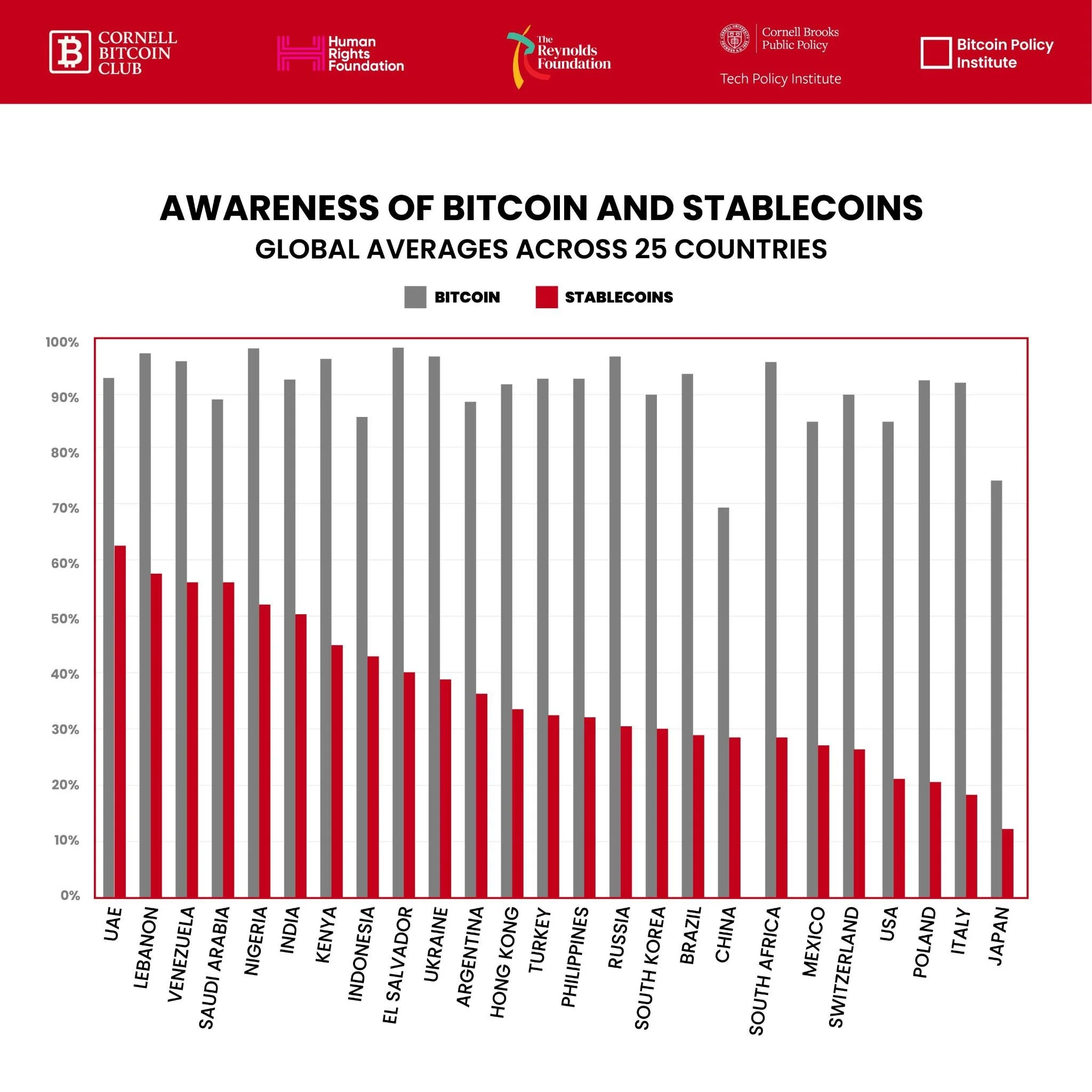 Bitcoin is one of the most recognized words on the planet. Across 25 countries in our study, awareness averaged 90%.