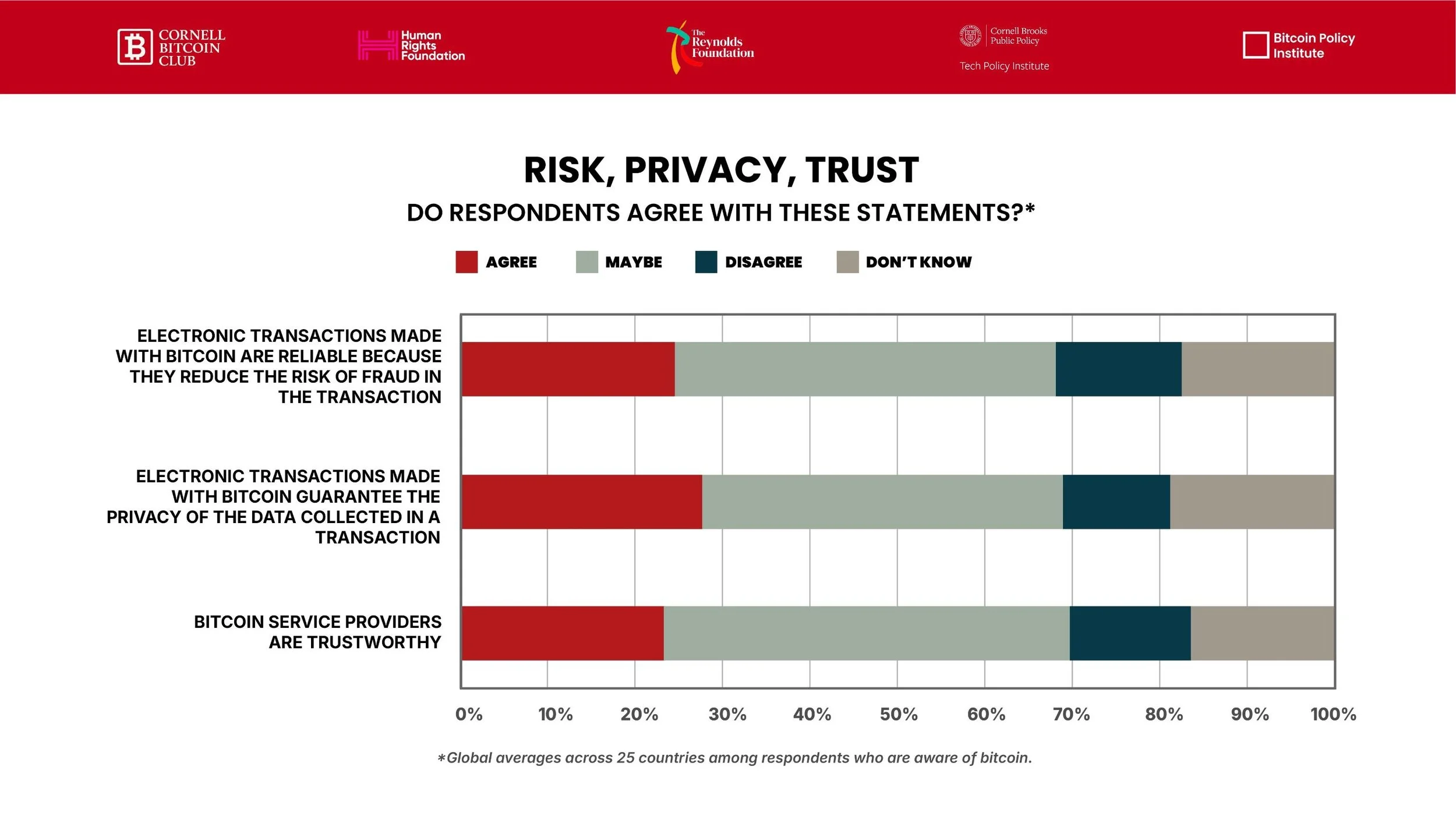 When asked whether Bitcoin reduces fraud risk, protects privacy, and whether Bitcoin service providers can be trusted, the most common answer wasn’t “yes” or “no.”
