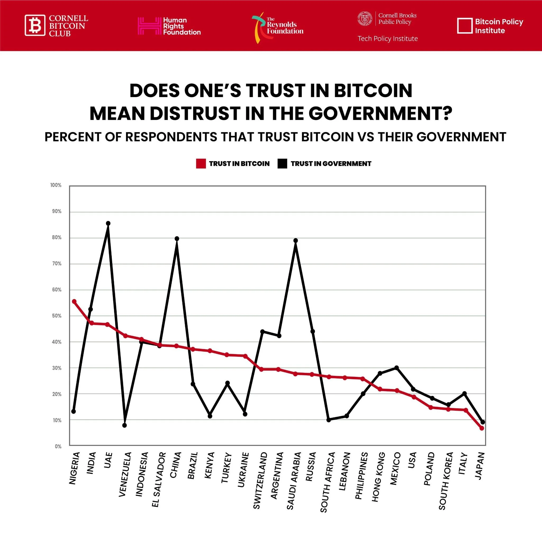In 10 of 25 countries, people reported trusting bitcoin more than their government.