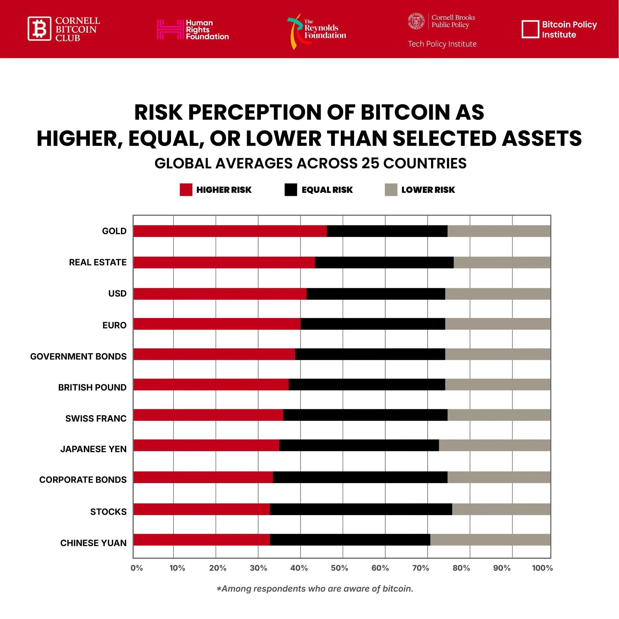Even where trust is relatively higher, perceptions of risk remain a major barrier to adoption. Compared to traditional assets, respondents see Bitcoin as:
