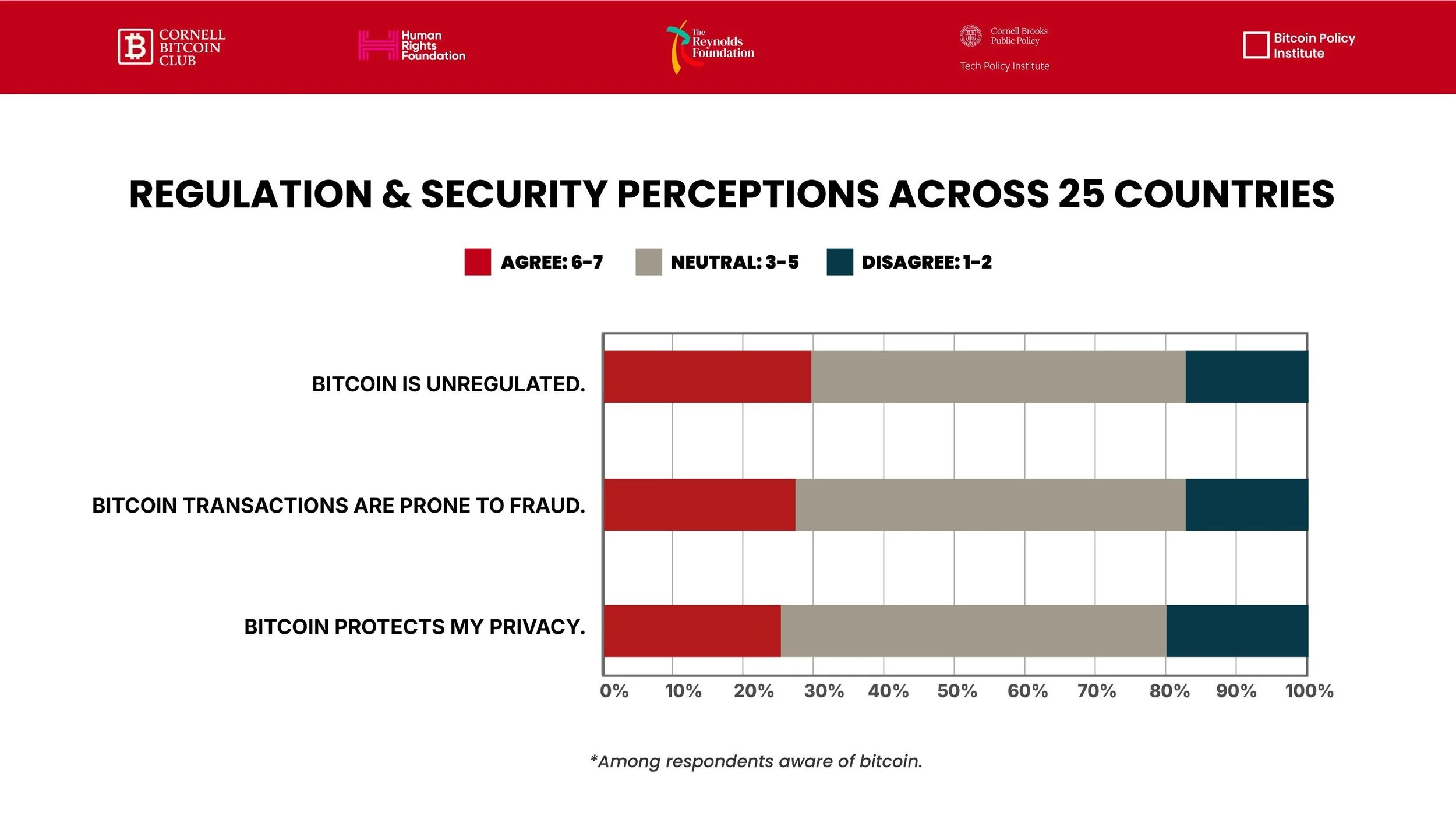 We then asked how respondents perceive bitcoin’s regulation and security profile.